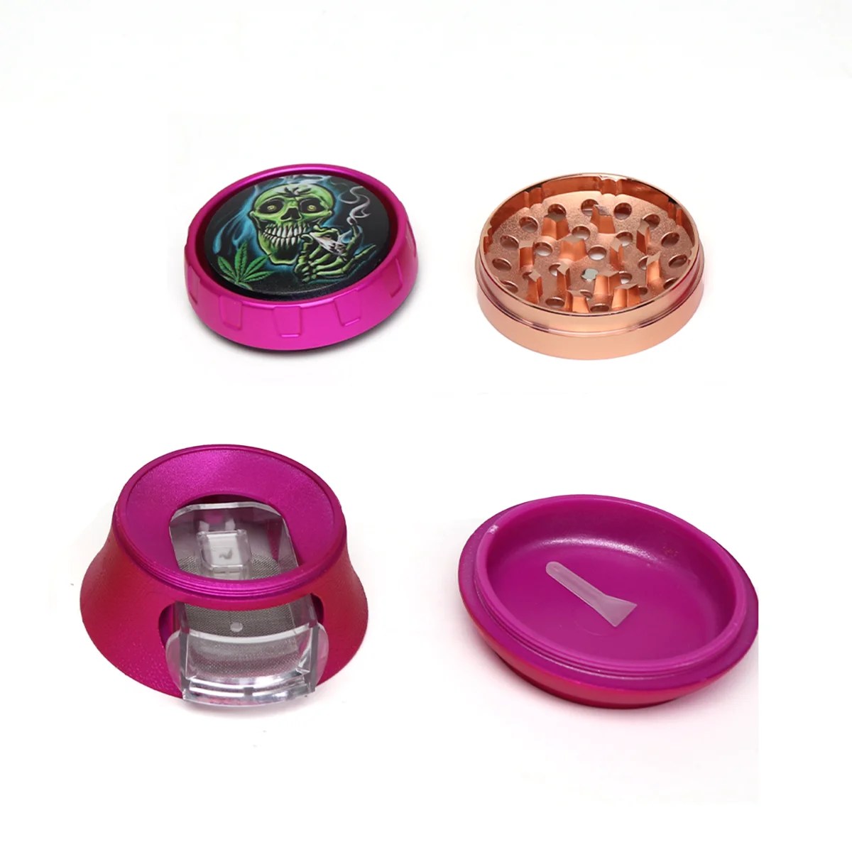 Large 4 Piece Grinder with Push Drawer ( Top Cover Spinner )